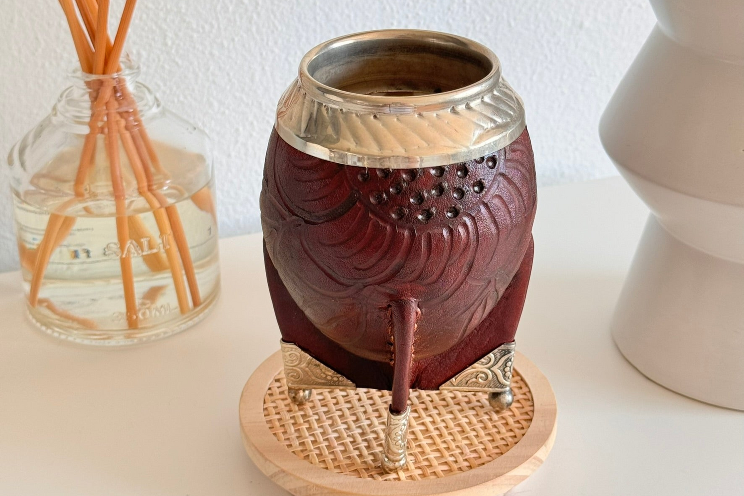 Mate Cup Imperial Premium. Made by the best artisans with the best wrought leather in Argentina. Metal guard with field style design.We have Chiseled models.