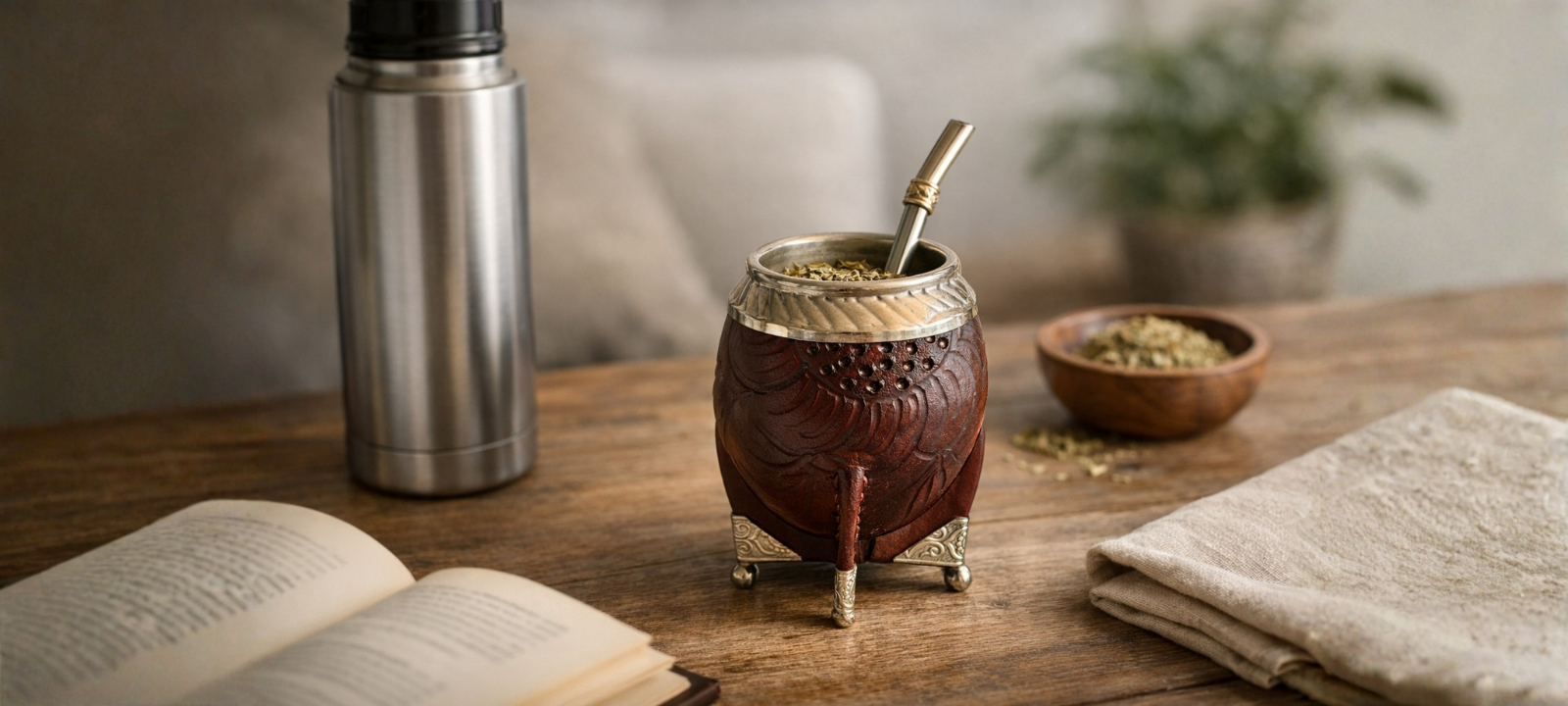 Mate Cup Argentino Imperial Croco Con Base Metalica Colorado. (With Straw)