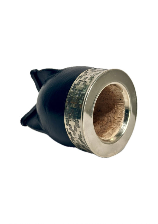Mate Cup Argentino Imperial Negro Floreado sin base.(With Straw)