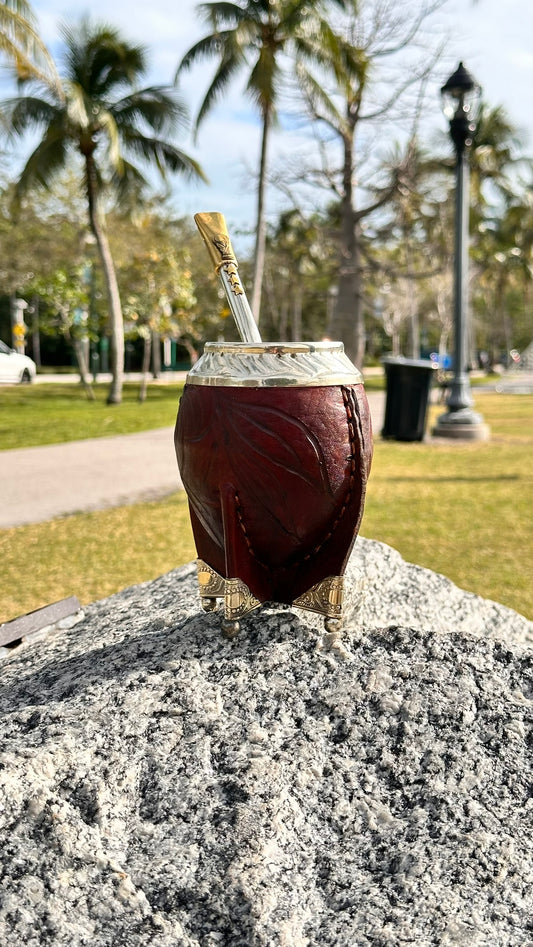 Mate Cup Argentino Imperial Croco Con Base Metalica Colorado. (With Straw)