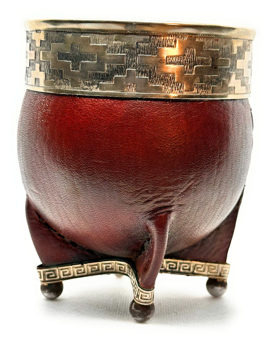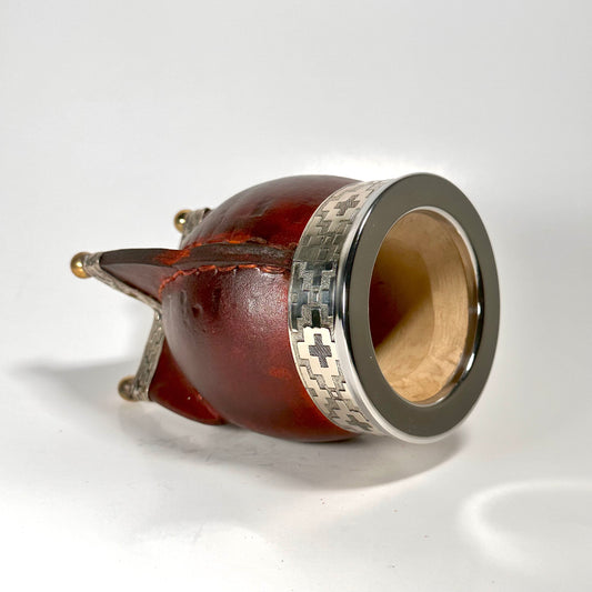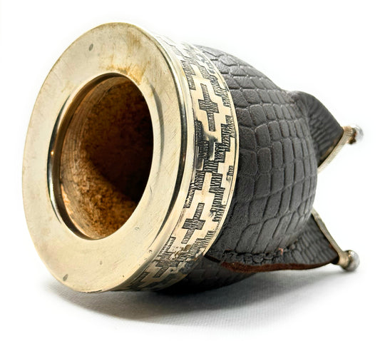 Mate Cup Argentino Imperial Con Base Croco chocolate.(With Straw)