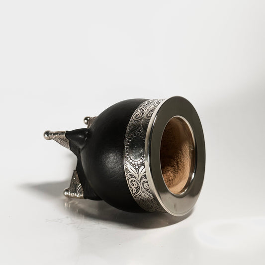 Mate Cup Argentino Imperial Negro Floreado sin base.(With Straw)