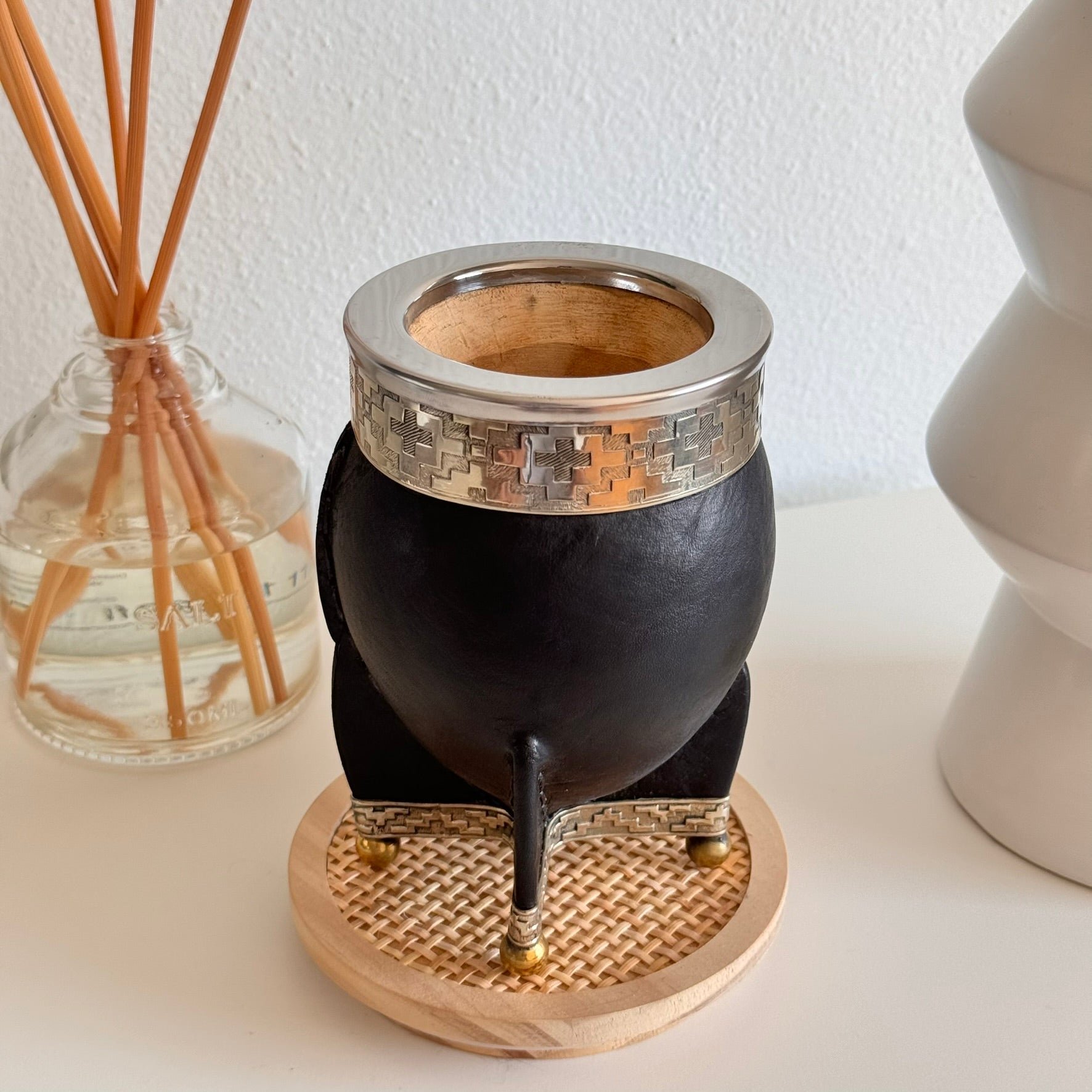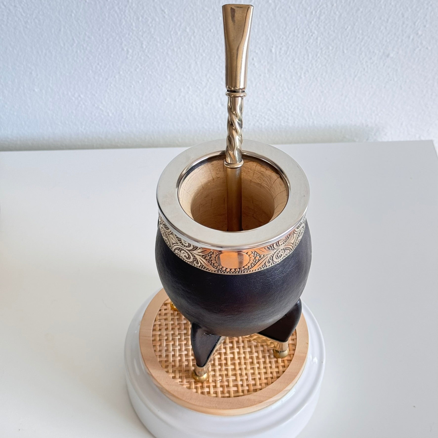 - Envuelto en cuero: Nuestra taza de mate está elegantemente envuelta en cuero genuino, agregando durabilidad y un toque de sofisticación a su ritual de tomar mate.