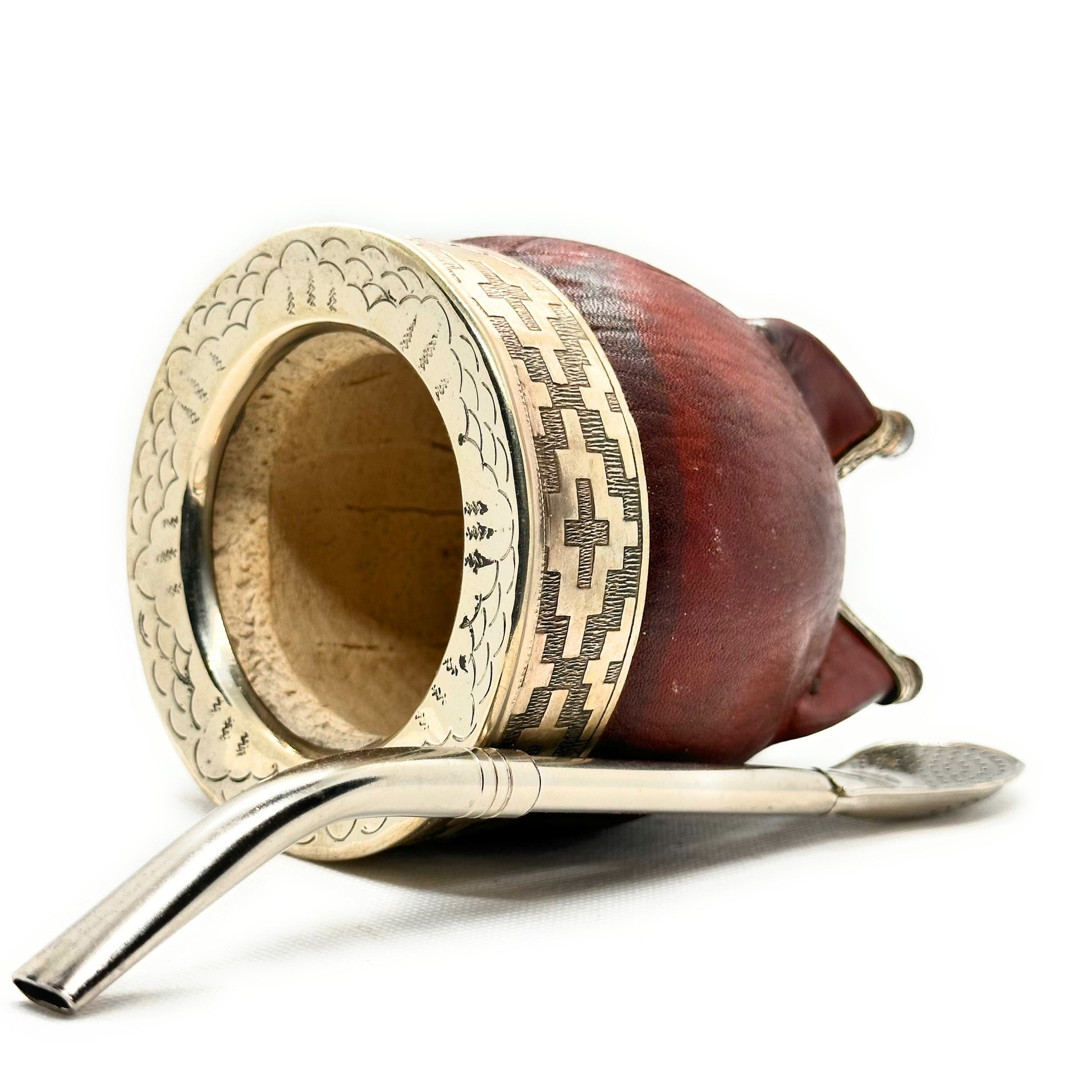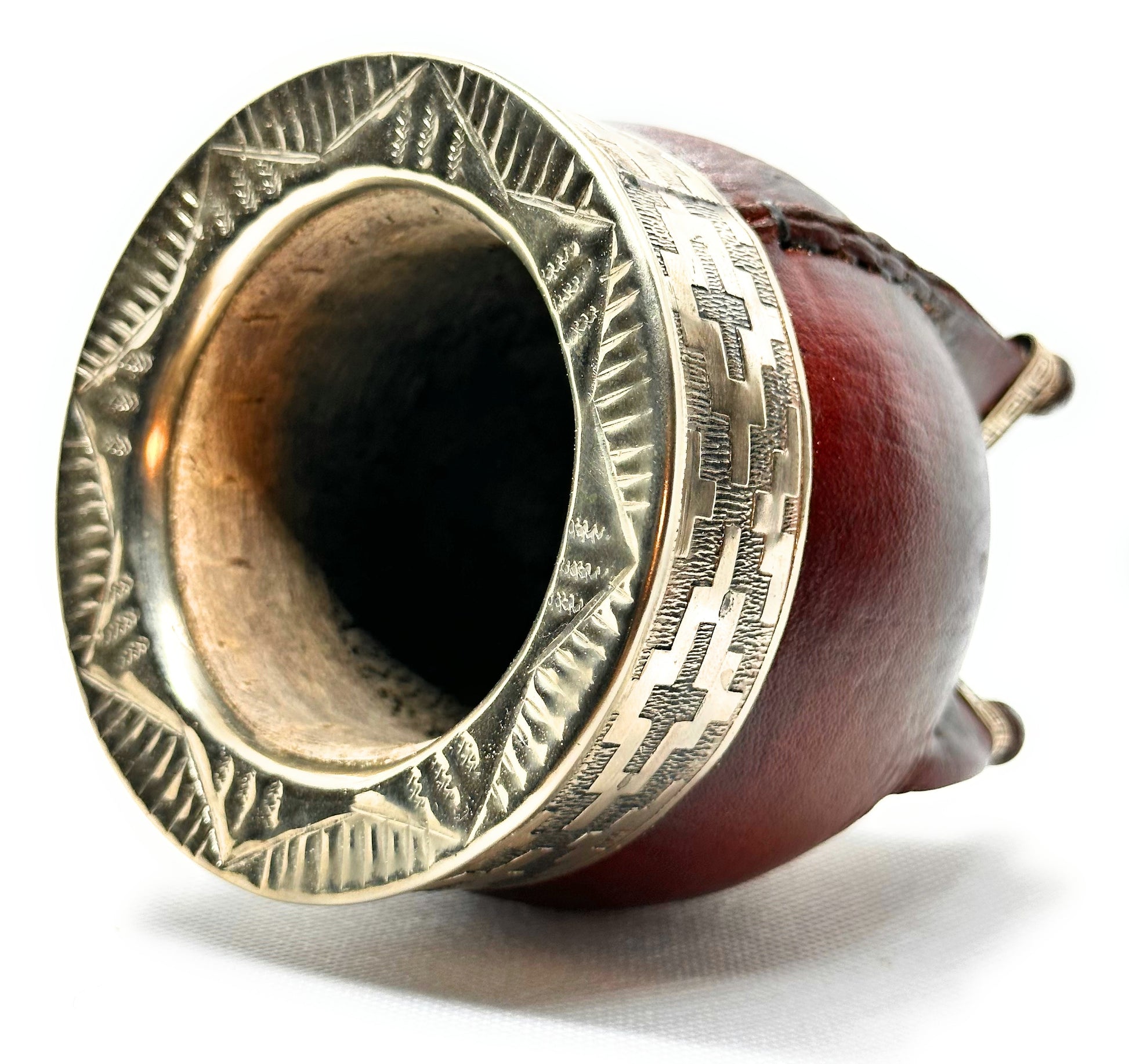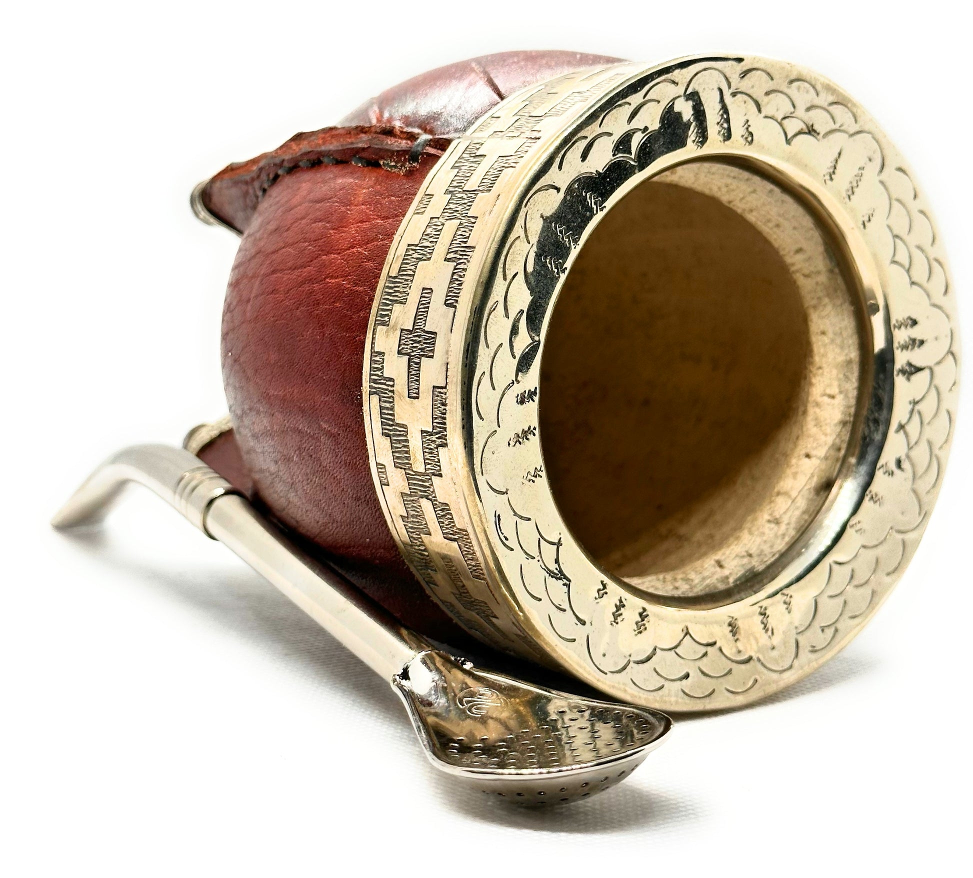 - Envuelto en cuero: Nuestra taza de mate está elegantemente envuelta en cuero genuino, agregando durabilidad y un toque de sofisticación a su ritual de tomar mate.
